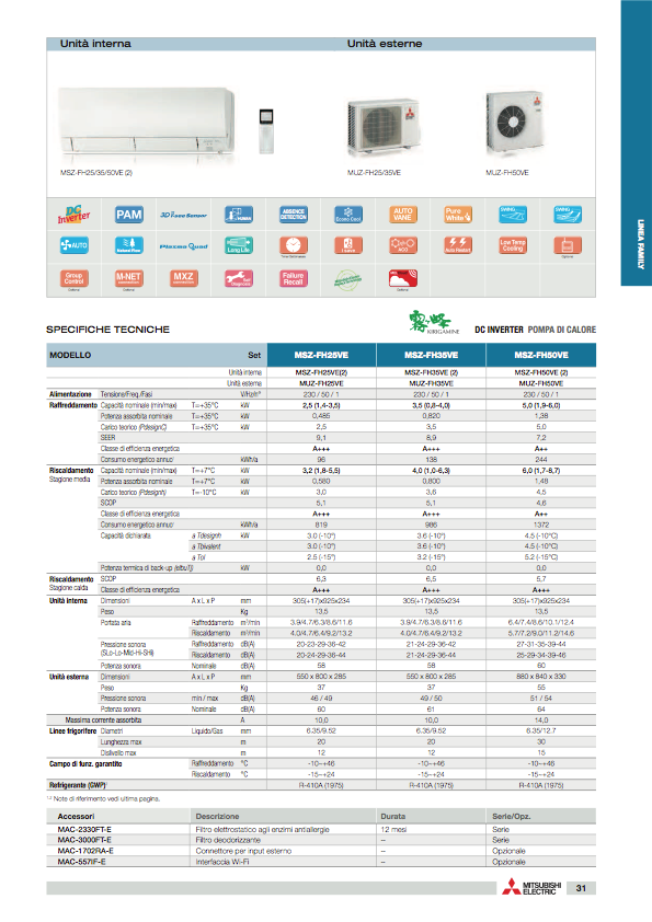 La serie Mitsubishi MSZ-FH, con tecnologia Inverter, unisce prestazioni di elevata silenziosità ad un design classico ma allo stesso tempo elegante caratterizzato da linee pulite e squadrate.
